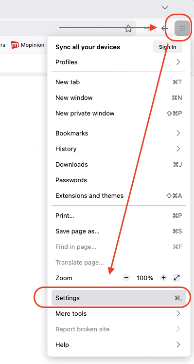 - Avaa selaimessa asetukset / settings