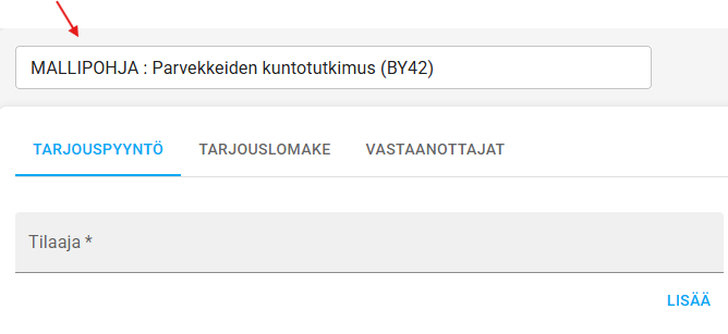 - Huomaa poistaa sana 'MALLIPOHJA' tarjouspyynnön otsikosta, jos kopioit mukaan myös otsikon