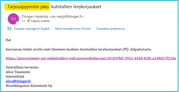 Spostissa olevan linkin takaa avautuu kilpailutuksen tilanne: